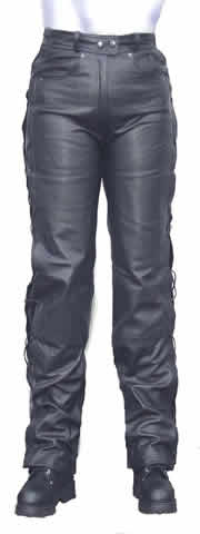 Lambski Leather Pantsare designed for casual use and won't hold up for continuous motorcycle riding. So for Biker wear we recommend the Cowhide. They are great looking and the lacing allows the pants to fit the contour of your body well. The Waist is at the regular place, not low riding. Features include belt loops, fly front with zipper and snap, pockets front and back. Imported |